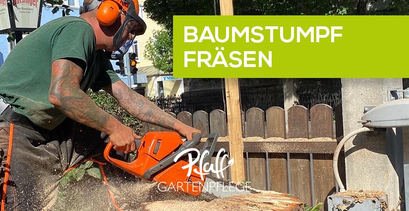 Wenn Sie eine Baumfällung durchgeführt haben oder einen alten Baumstumpf im Garten haben, dann ist es oft ärgerlich, beim Rasenmähen immer wieder um den Baumstumpf herumfahren zu müssen. Eine manuelle Entfernung kann mühsam und kostspielig sein. Daher bieten wir Ihnen bei Gartenpflege Pfaff eine professionelle Baumstumpfentfernung mit unserer Wurzelfräse an.
